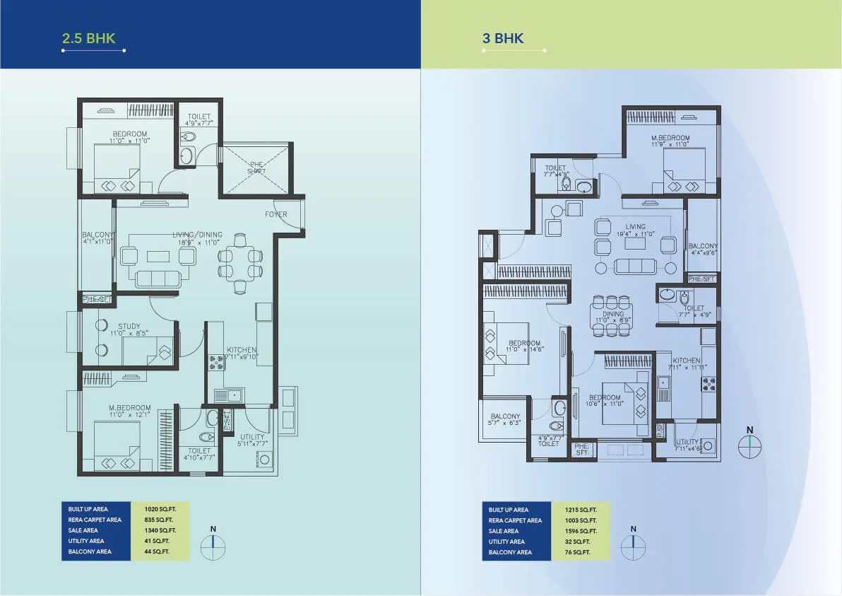 The size variants of the apartments are 1059 to 2075 sq.ft.